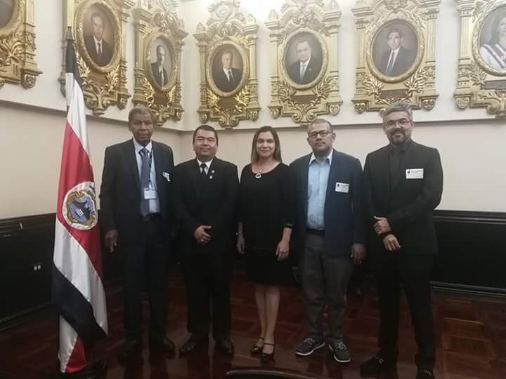 En la mesa principal acompañaron al Dr. Villalobos Chacón, la señora Diputada Karla Prendas Matarrita, el Dr. José Matarrita Sánchez, académico de la UTN, el Dr. José Antonio Blanco Villalobos, académico de la Universidad de la Salle, así como el Dr. Sherman Thomas Jackson, reconocido académico costarricense.