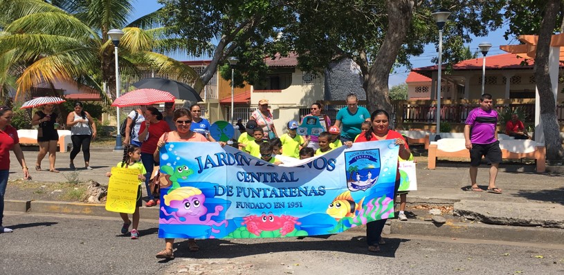 Un grupo de estudiantes de la UTN Sede del Pacífico y niños del Jardín Central de Puntarenas realizaron un recorrido por el comercio de Puntarenas.