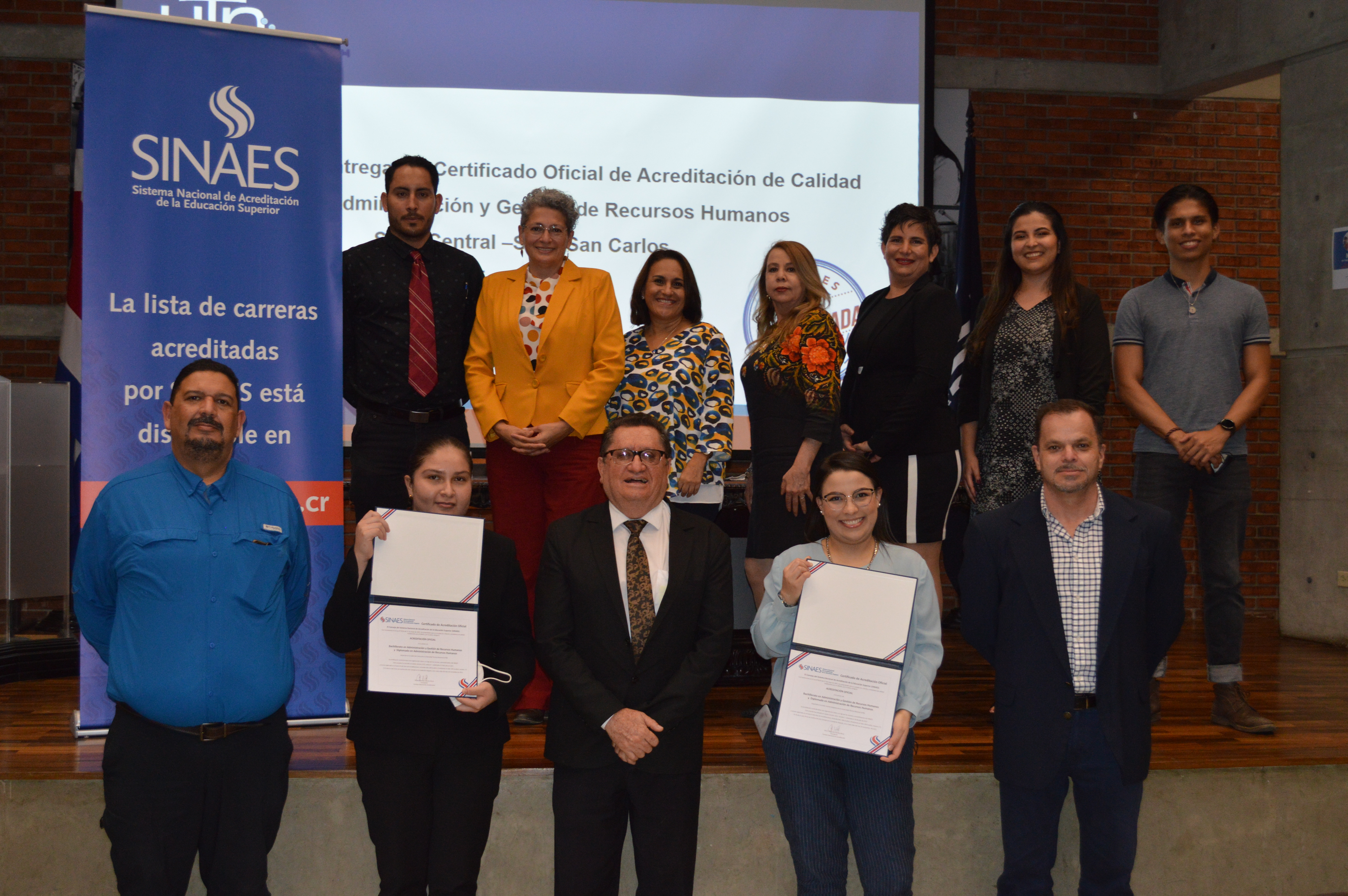 En esta ocasión el certificado fue otorgado a la carrera de Administración y Gestión de Recursos Humanos en el grado de Diplomado y Bachillerato de la Sede Central y la Sede de San Carlos.