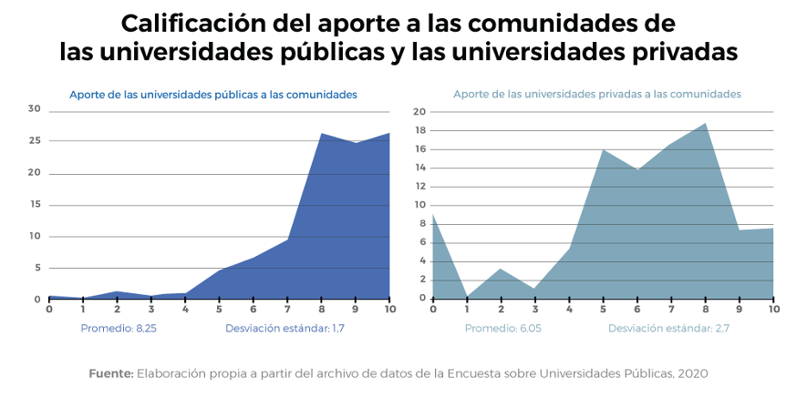 La perspectiva anterior podría relacionarse con el 47,9 % que expresó algún nivel de desacuerdo con la posibilidad de que estas instituciones públicas dediquen la mayor parte de su trabajo a la enseñanza y atiendan en menor medida las áreas de investigación, extensión y acción social.