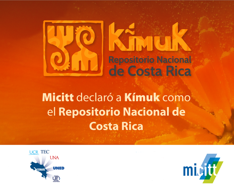El 26 de abril, el Ministerio de Ciencia, Innovación, Tecnología y Telecomunicaciones (Micitt), ente rector del Sistema Nacional de Ciencia, Tecnología e Innovación, declaró al Repositorio Kímuk (https://kimuk.conare.ac.cr/) como Repositorio Nacional de Costa Rica, esto forma parte de un reconocimiento para las universidades públicas que, en el 2016, crearon esta plataforma para constituirla como un espacio en línea que reúne la producción científica nacional y tiene, entre otros objetivos, promover el acceso abierto a la producción, resultado del quehacer académico financiado con fondos públicos.