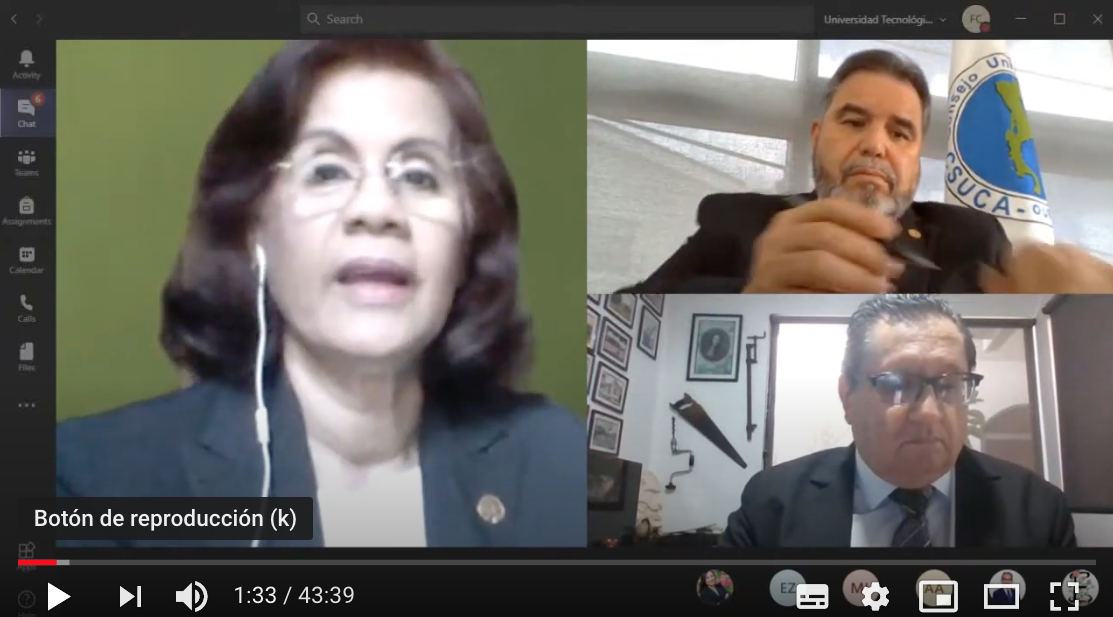 La graduación se realizó de forma virtual con la participación de: Carlos Alvarado Cerezo, secretario general del Csuca; Claudia Herrera, secretaria Ejecutiva, Cepredenac; Héctor Montemayor, rector Universidad Tecnológica de Panamá; Emmanuel González Alvarado, rector de la Universidad Técnica Nacional; Erika Zamora Leandro, en representación de los estudiantes; Casilda Saavedra, coordinadora del Programa del Diplomado/Curso Cambio Climático y Gestión Integral del Riesgo de Desastres y Oscar Vega, facilitador del Diplomado/Curso Cambio Climático y Gestión Integral del Riesgo de Desastres.
