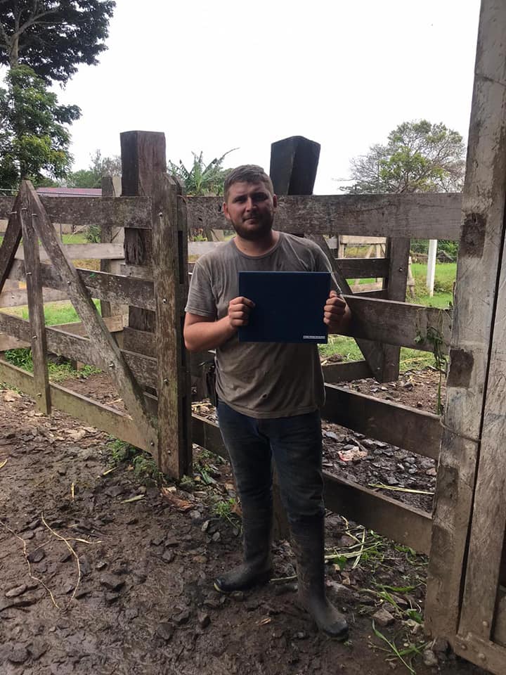Este apasionado de la finca, los caballos y el ganado, se siente feliz al obtener su título de diplomado.