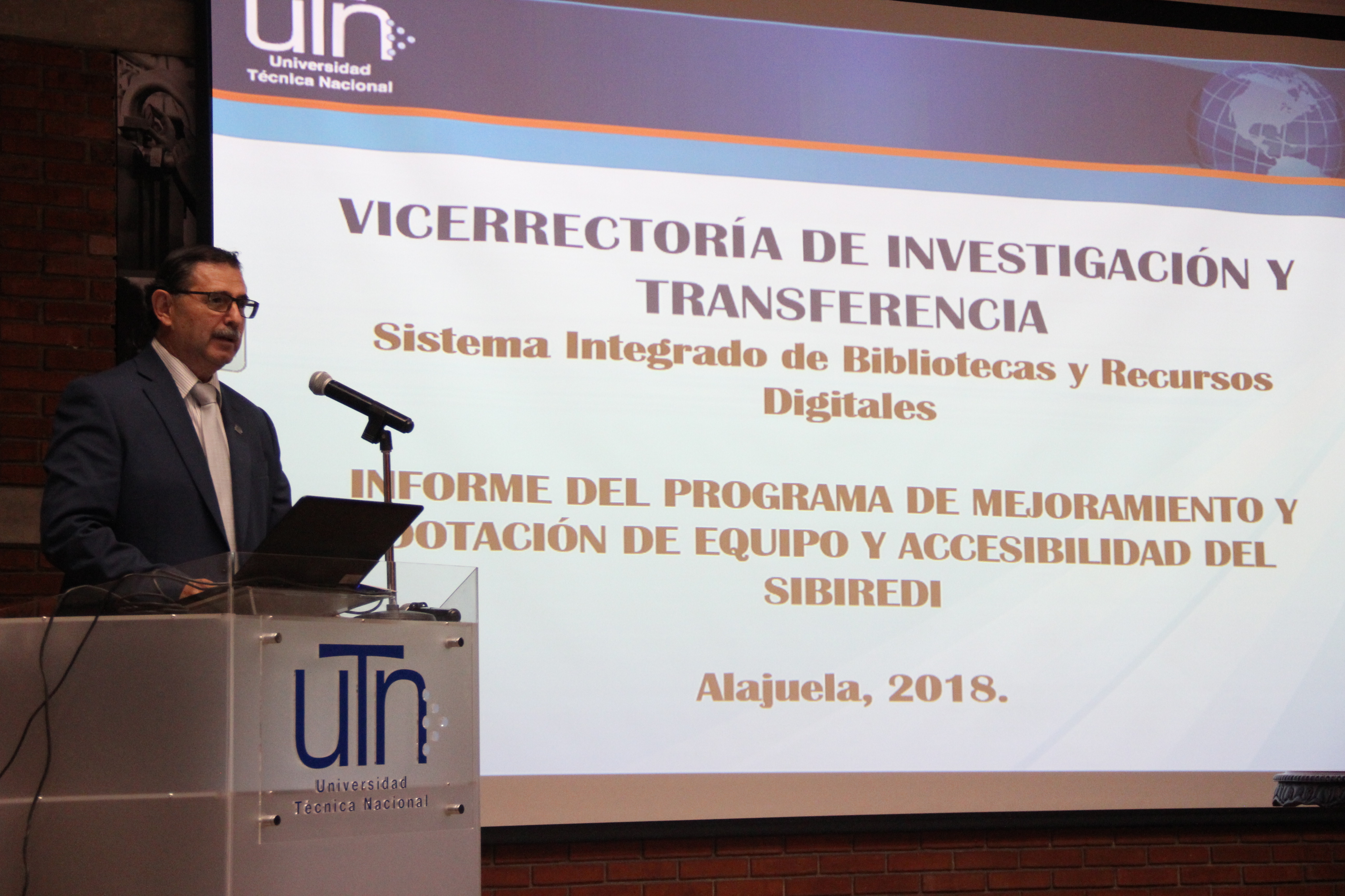 El 11 de diciembre, la Vicerrectoría de Investigación y Trasferencia de la Universidad Técnica Nacional (UTN), presentó el informe del Programa de Mejoramiento y Dotación de Equipo y Accesibilidad, con el cual se busca una mayor calidad académica, acceso a base de datos, mejoramiento institucional y consolidación del Sistema de Bibliotecas y Recursos Digitales (SIBIREDI).