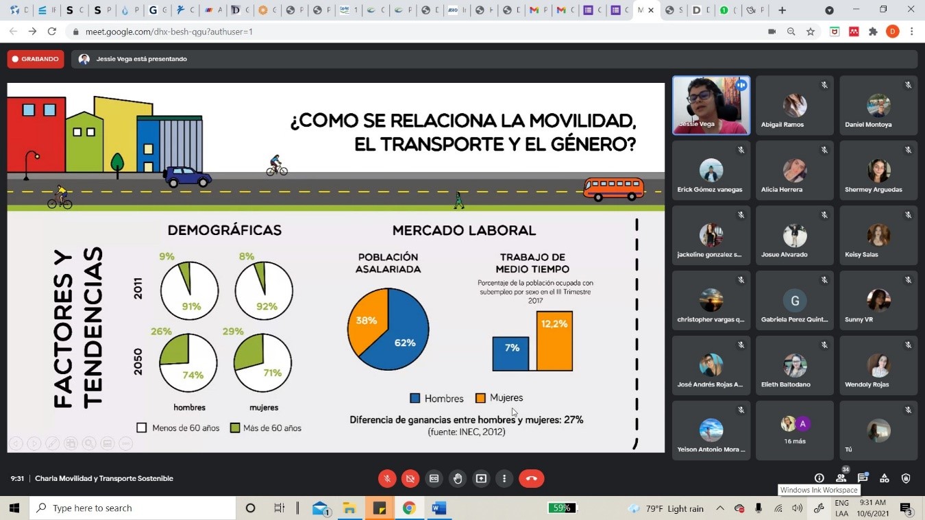 Durante la charla se tocé otro enfoque del tema como Género en el uso de transporte público. Esta actividad se llevó a cabo el día 06 de octubre a las 9 de la mañana.