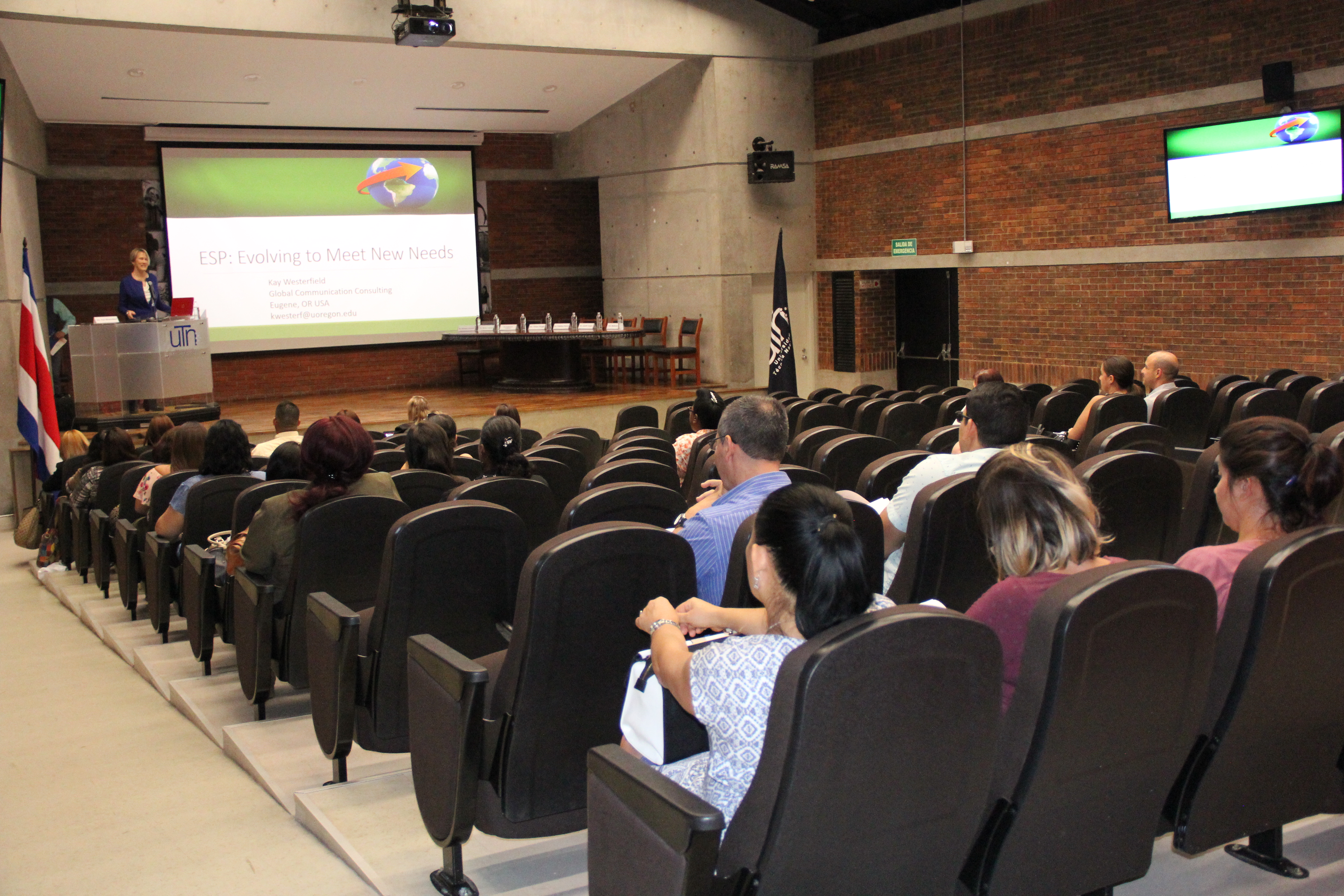 Para esta actividad se contó con la participación de la conferencista Kay Westerfield, especialista en inglés para propósitos específicos de Global Communication Consulting, representantes de la UNED, UNA, UTN, MEP quienes compartieron su experiencia en el desarrollo de cursos de inglés para propósitos específicos en dichas instituciones. Por su parte CINDE, presentó información relevante sobre la importancia del idioma inglés en la formación de los profesionales y las necesidades del mercado laboral.