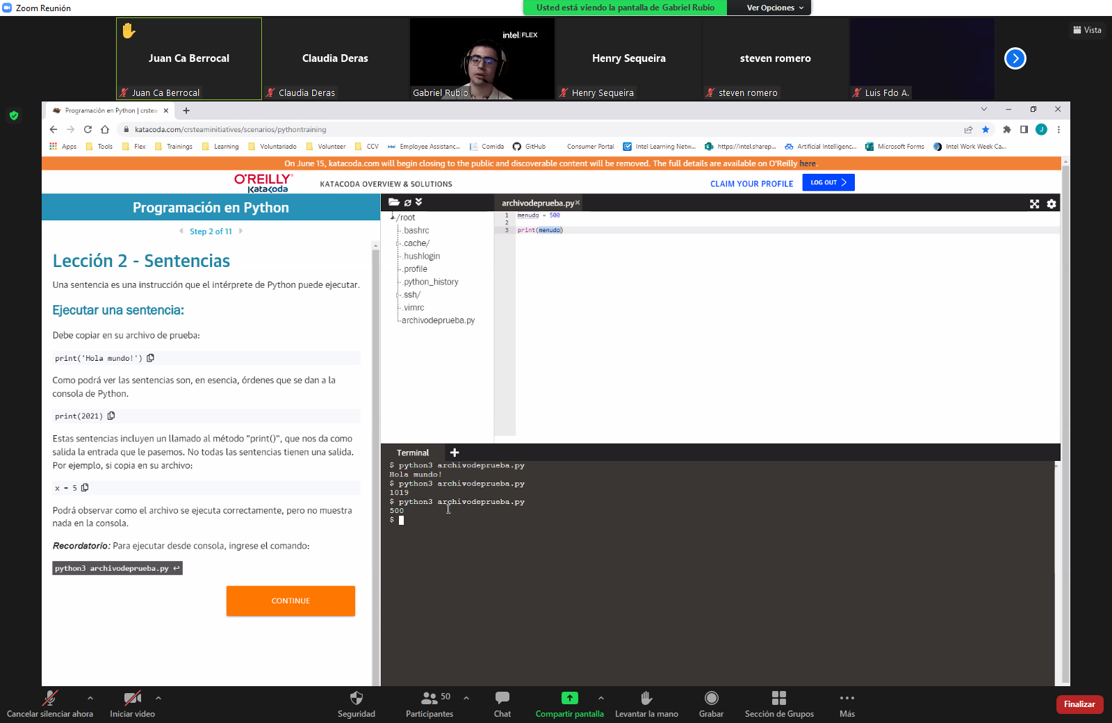 El taller se ofreció de modalidad virtual, y fue facilitado por un experto en el tema y colaborador de la empresa INTEL, quien señaló detalles importantes que se deben considerar al programar a través de Python.