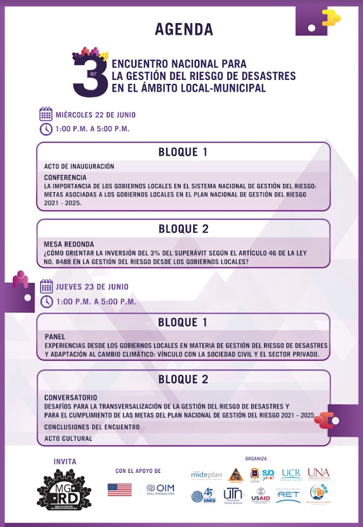 Adjuntamos la agenda para que valoren su participación. El enlace para inscribirse y participar de todo el evento es el siguiente: https://registro-iom.tex.cr.