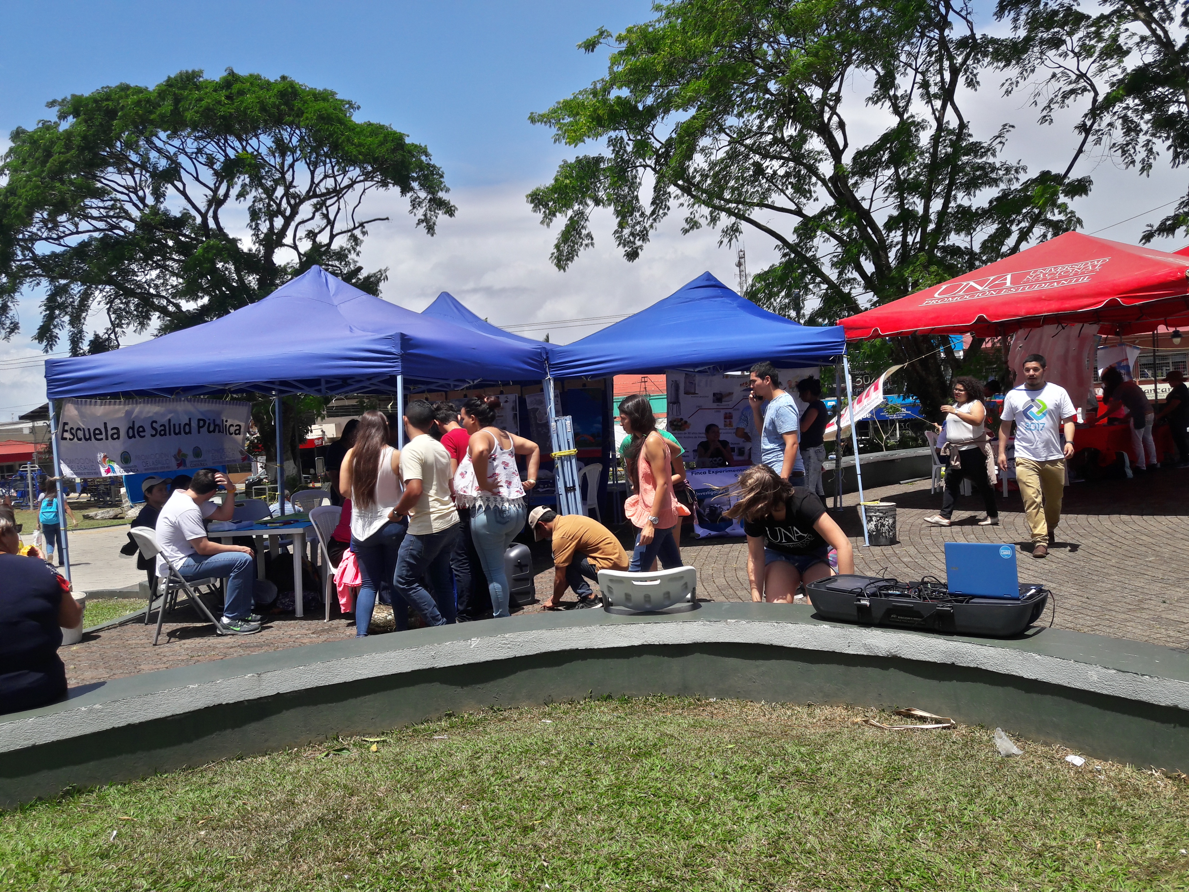 Llenos de mucha motivación y entusiasmo, los estudiantes colocaron toldos y sus stands en los predios del parque central de Ciudad Quesada e iniciaron la labor informativa.