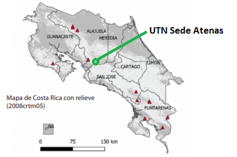 Mapa 1. Ubicación de la UTN Sede Atenas con respecto a los brotes de Rabia paralítica bovina del año 2019. Fuente: SENASA