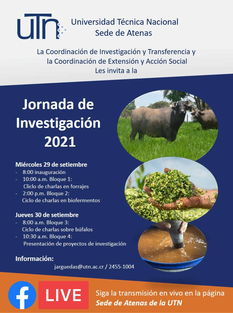 Durante los días 29 y 30 de setiembre la Sede de Atenas realizará en forma virtual, la Jornada de Investigación 2021