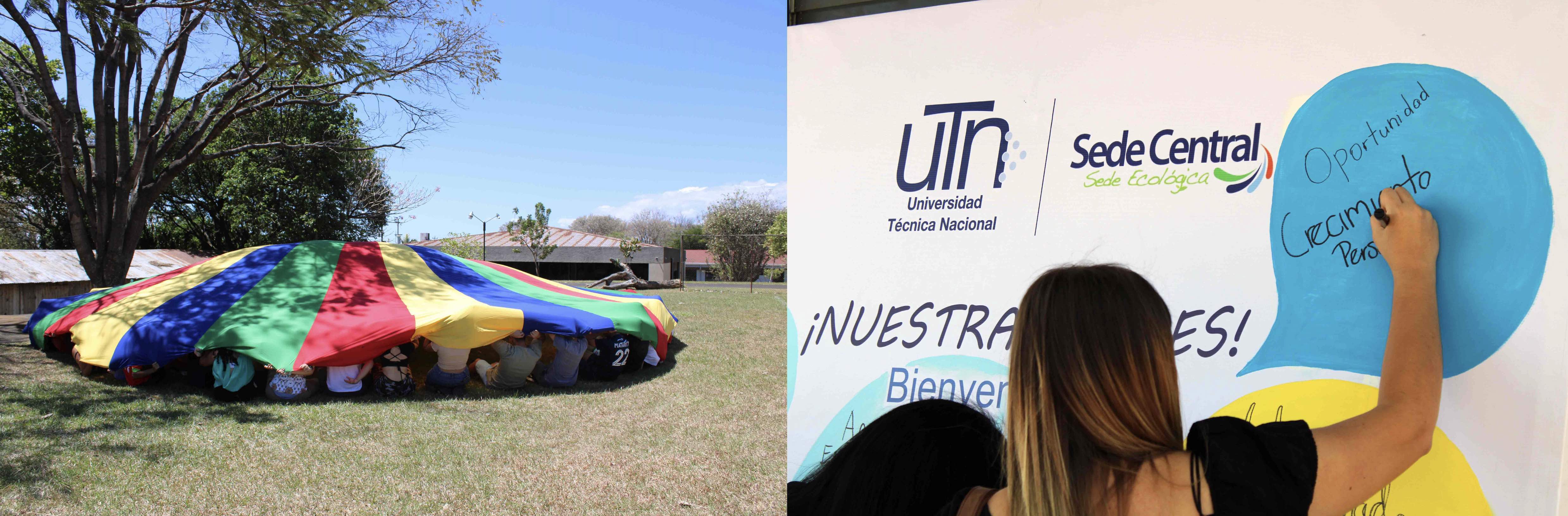 Posteriormente, se realizaron dos convivios recreativos, el día martes 14 de febrero y el jueves 16 de febrero, con el propósito de compartir un espacio lúdico entre pares, donde el juego, la creatividad y el sentido de pertenencia fueron el objetivo, permitiendo así construir un mural interactivo, donde cada estudiante pudo expresar lo que significaba haber ingresado a la UTN.