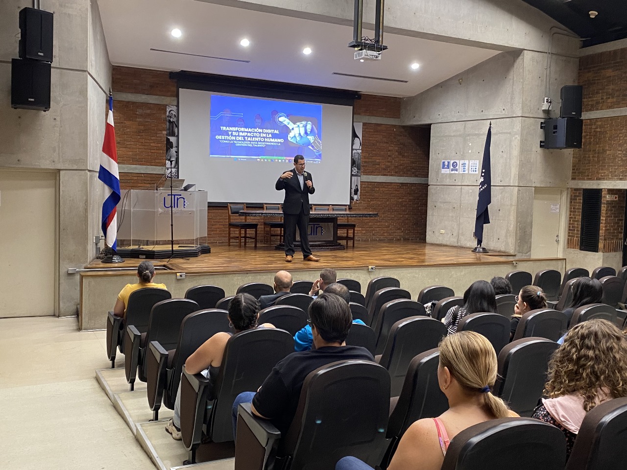 El pasado 16 de septiembre, la Sede Central de la Universidad Técnica Nacional (UTN) dio la bienvenida al III Cuatrimestre con una charla inaugural titulada "Transformación digital: el futuro del talento humano", impartida por el reconocido expositor internacional Máster Douglas Castaneda. Castaneda, quien es el Coordinador de la Maestría en Dirección Estratégica del Talento Humano en la Universidad Evangélica de El Salvador y Gerente de Capacitación en Premium Restaurants of America, ofreció una visión profunda sobre los desafíos y oportunidades que la transformación digital presenta para la gestión del talento humano.
