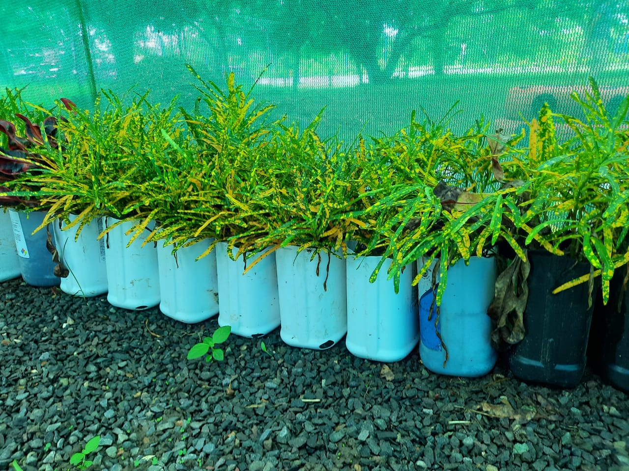 El vivero fue construido con materiales sobrantes de otras obras realizadas en el Campus; la mayoría reutilizados, ejemplo de ello, galones recolectados se utilizan para sembrar las semillas e identificar las especies.