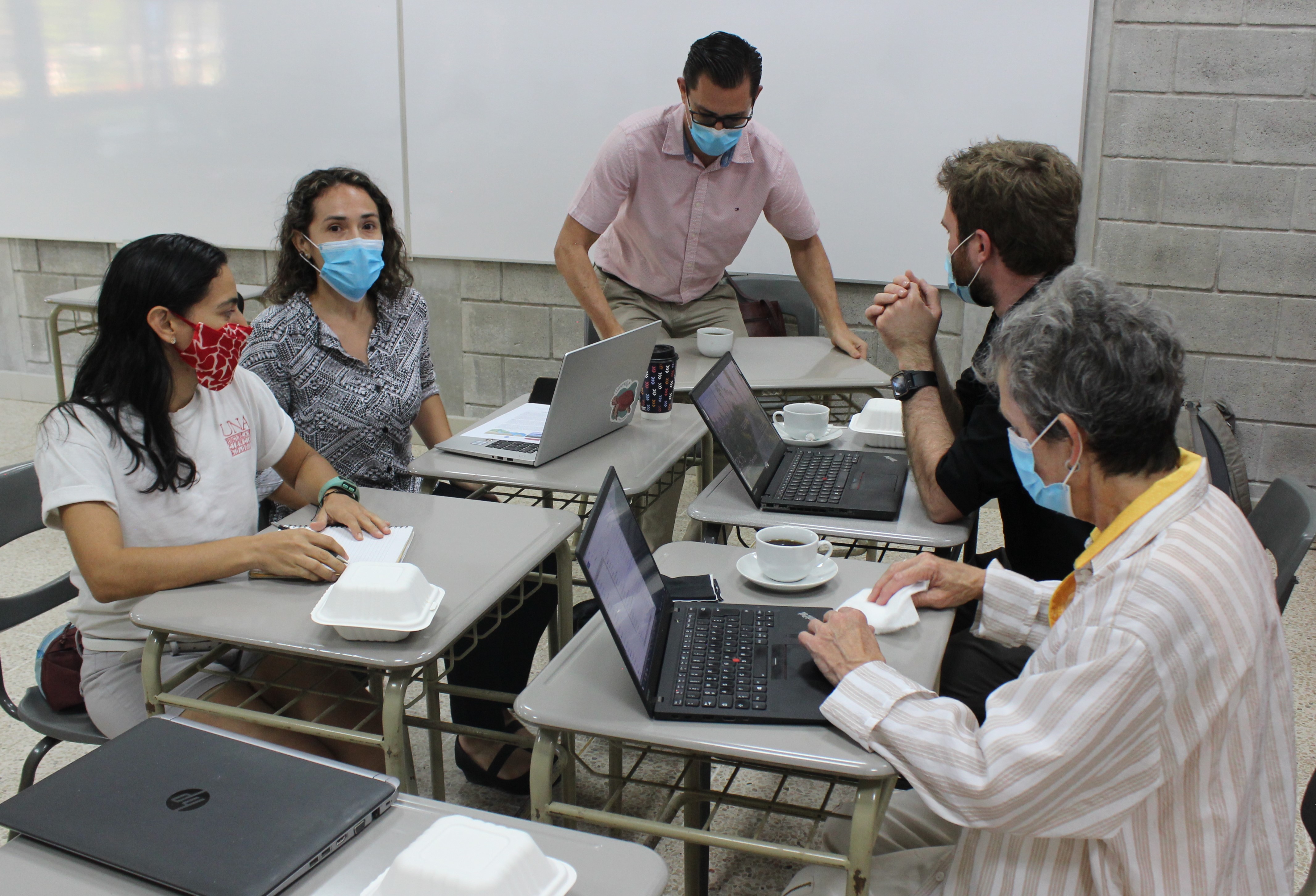 Cinco germanos compartieron durante esa tarde una sesión de trabajo muy provechosa. Caroline Van Pers, Jana Rülke, Claudia Pahl-Wostl, Sussane Schluender y Philipp Gorris trabajaron en equipos con los Coordinadores Regionales de las Áreas de Docencia, Extensión e Investigación.