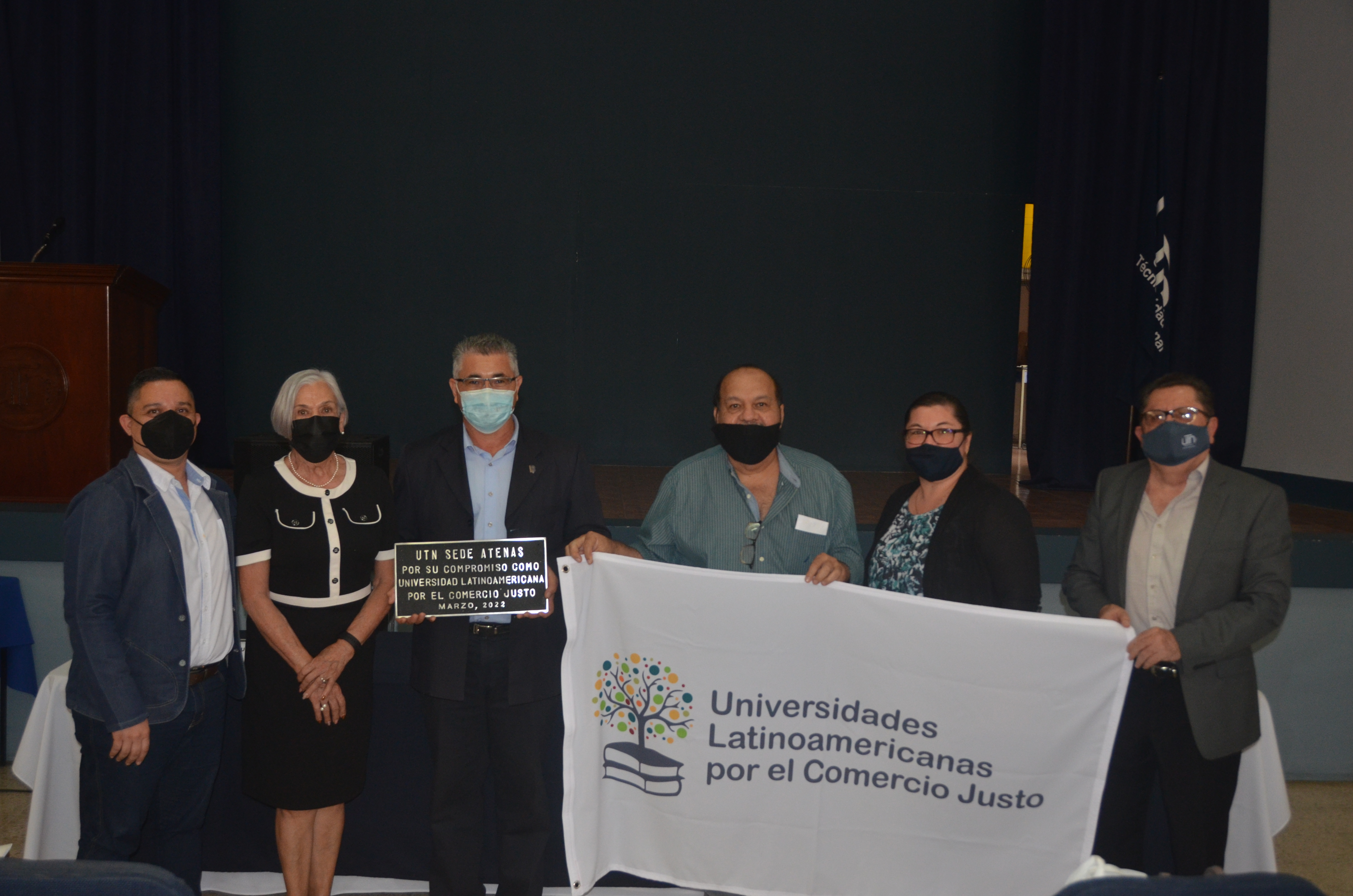 Al finalizar el espacio de preguntas y respuestas, a la Sede de Atenas se le brindó un reconocimiento mediante una placa conmemorativa que contiene el siguiente texto: “UTN Sede de Atenas por su compromiso como universidad latinoamericana por el comercio justo” y de forma paralela también recibió una bandera como símbolo del trabajo realizado.