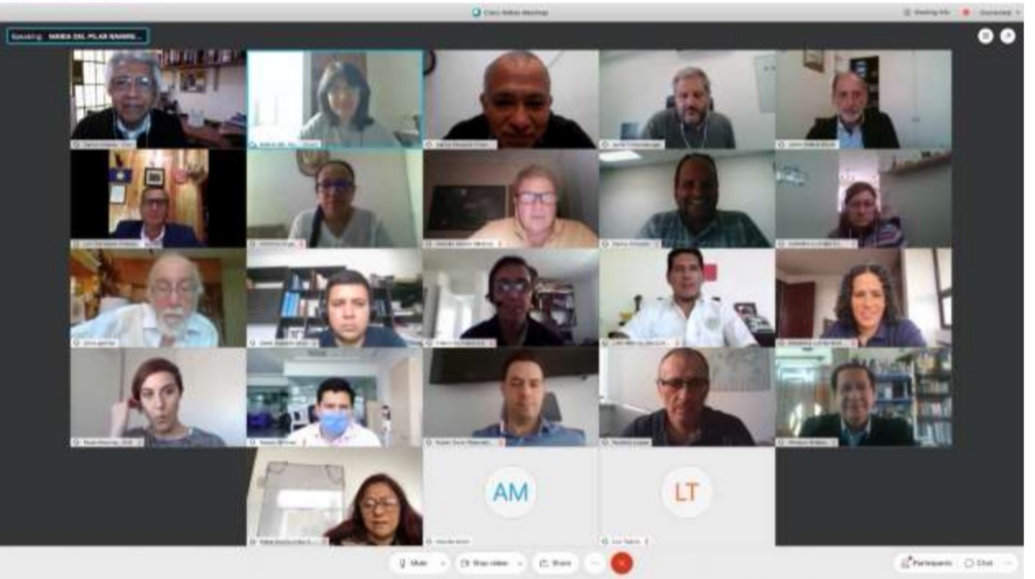 Los representantes de las universidades socias participando de la Asamblea virtual de la RED UE ALCUE 2020