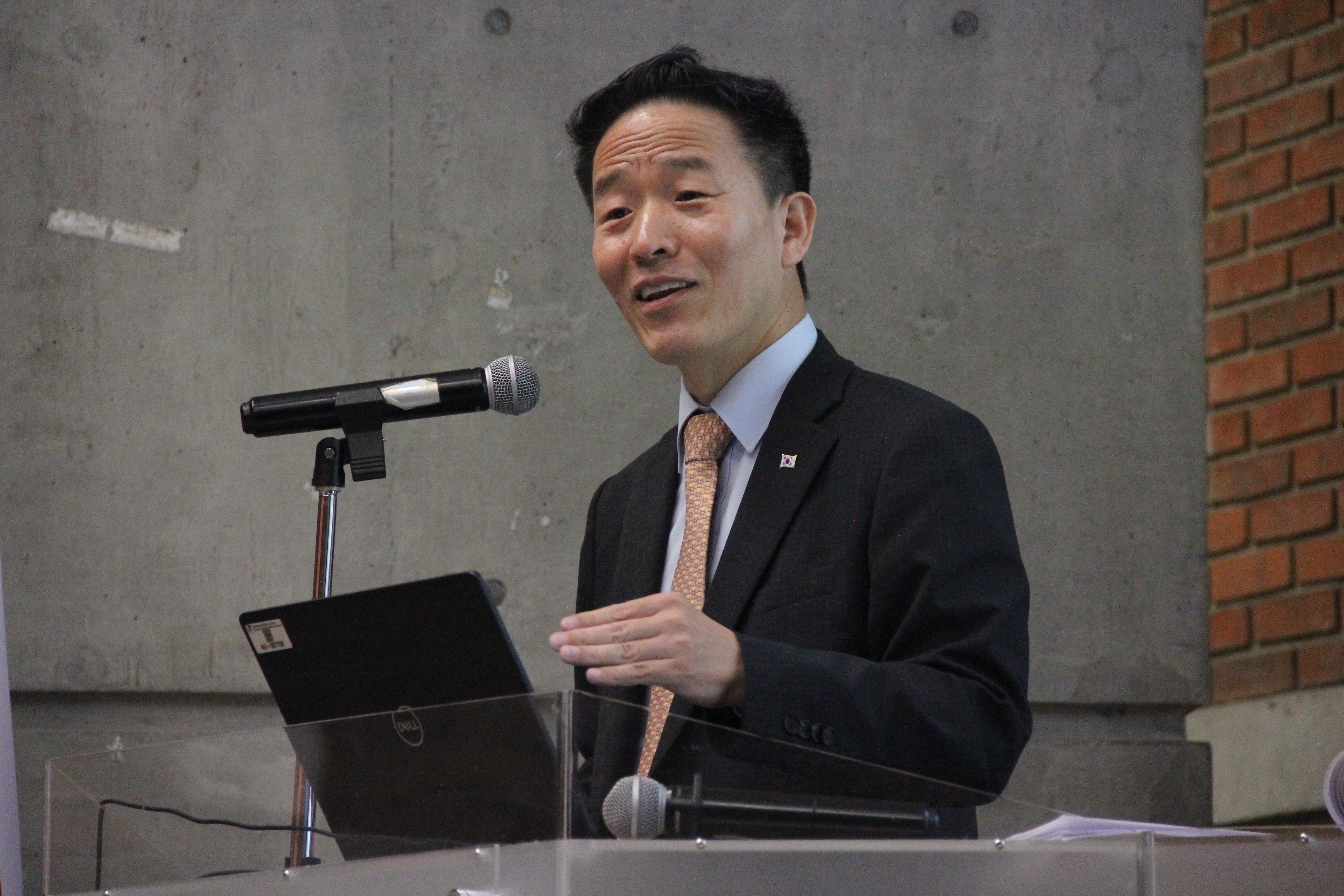 Durante la ponencia, el señor Yoon habló sobre la estrecha relación entre Corea del Sur y Costa Rica y los beneficios del Tratado de Libre Comercio entre ambos países.