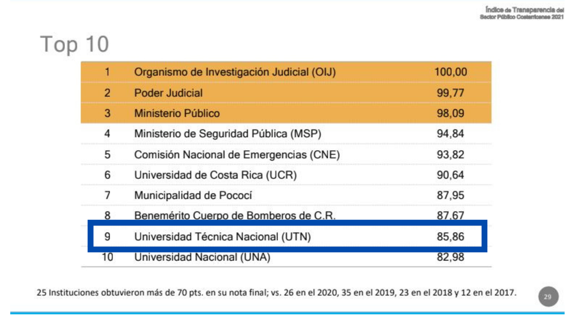 La UTN se ha comprometido a continuar desarrollando estrategias de mejora para fortalecer la transparencia de la gestión y la rendición de cuentas, en beneficio de la institucionalidad costarricense.