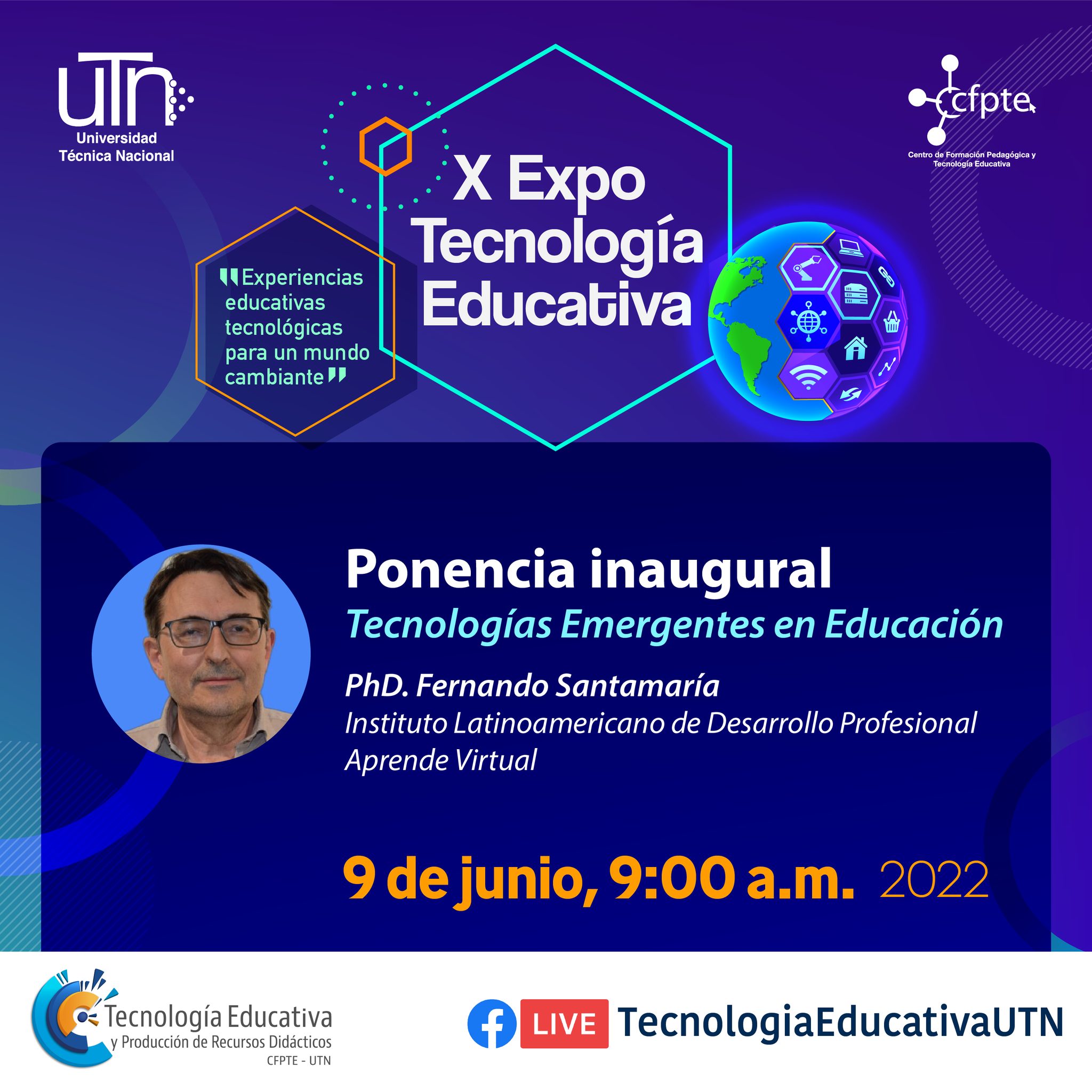 Santamaría es, además, profesor titular de la cátedra "Ecosistemas Digitales" de la Maestría en Entornos Virtuales que la Universidad Técnica Nacional ofrece en conjunto con el Instituto Aprende Virtual, a la comunidad nacional e internacional. Durante su charla hizo un recorrido por las principales tecnologías que influyen en la labor educativa y profundizó sobre sus alcances y limitaciones en el contexto actual.