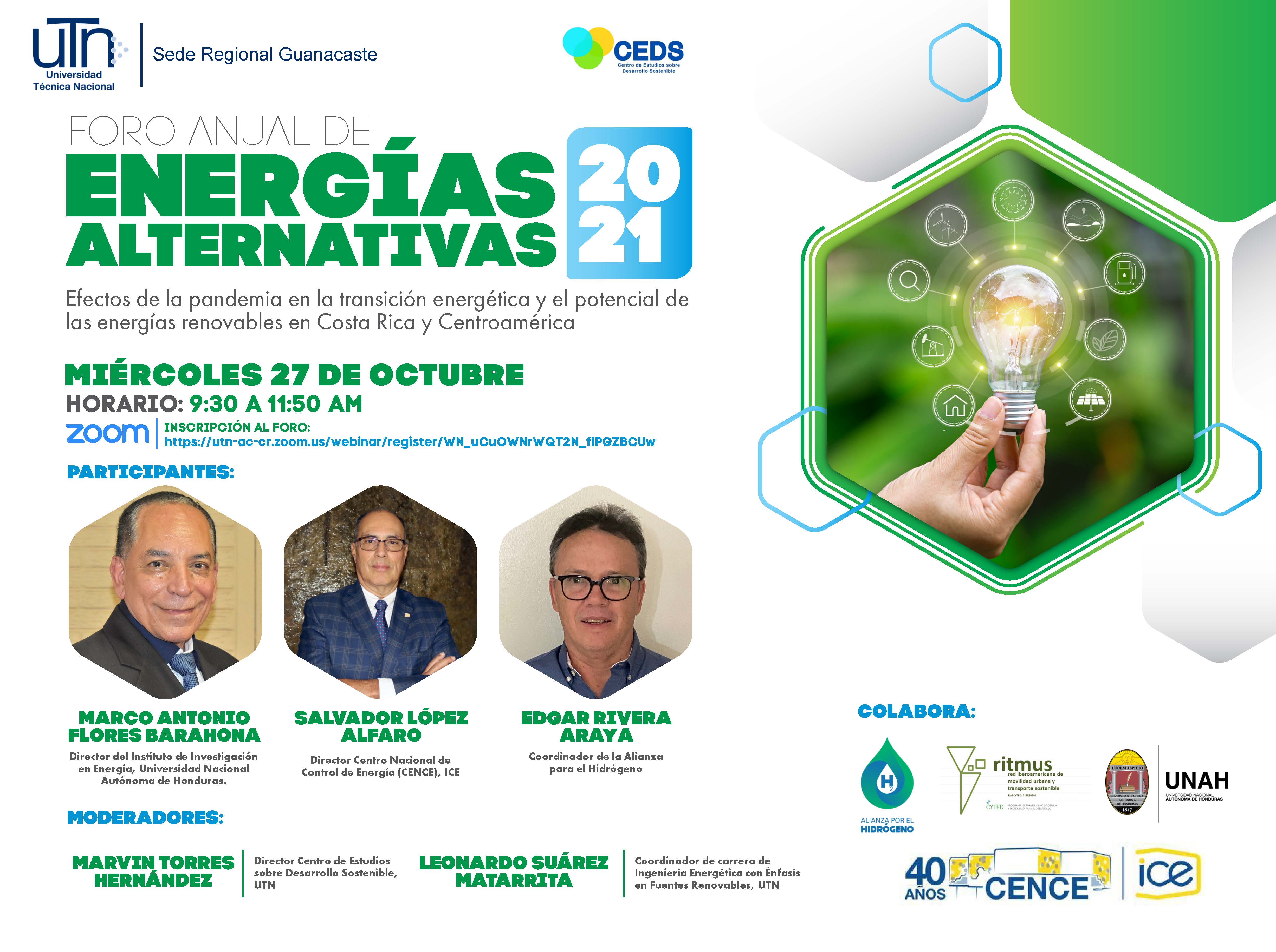El objetivo de este foro es intercambiar perspectivas en torno a los retos y oportunidades en el uso de las energías renovables en Costa Rica y en la región centroamericana en el contexto de pandemia.