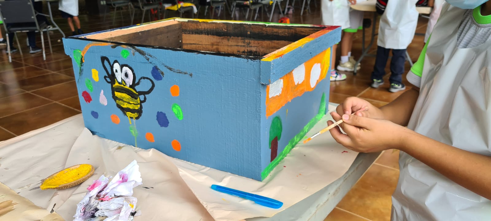 Una de las actividades más disfrutada por los niños, fue la decoración de casas para abejas, las cuales fueron distribuidas en grupo y se pintaron en mesas de trabajo, con temáticas relacionadas a la naturaleza. Cada casa fue construida con las condiciones óptimas y agujeros de distintos tamaños, para albergar diferentes especies de abejas.