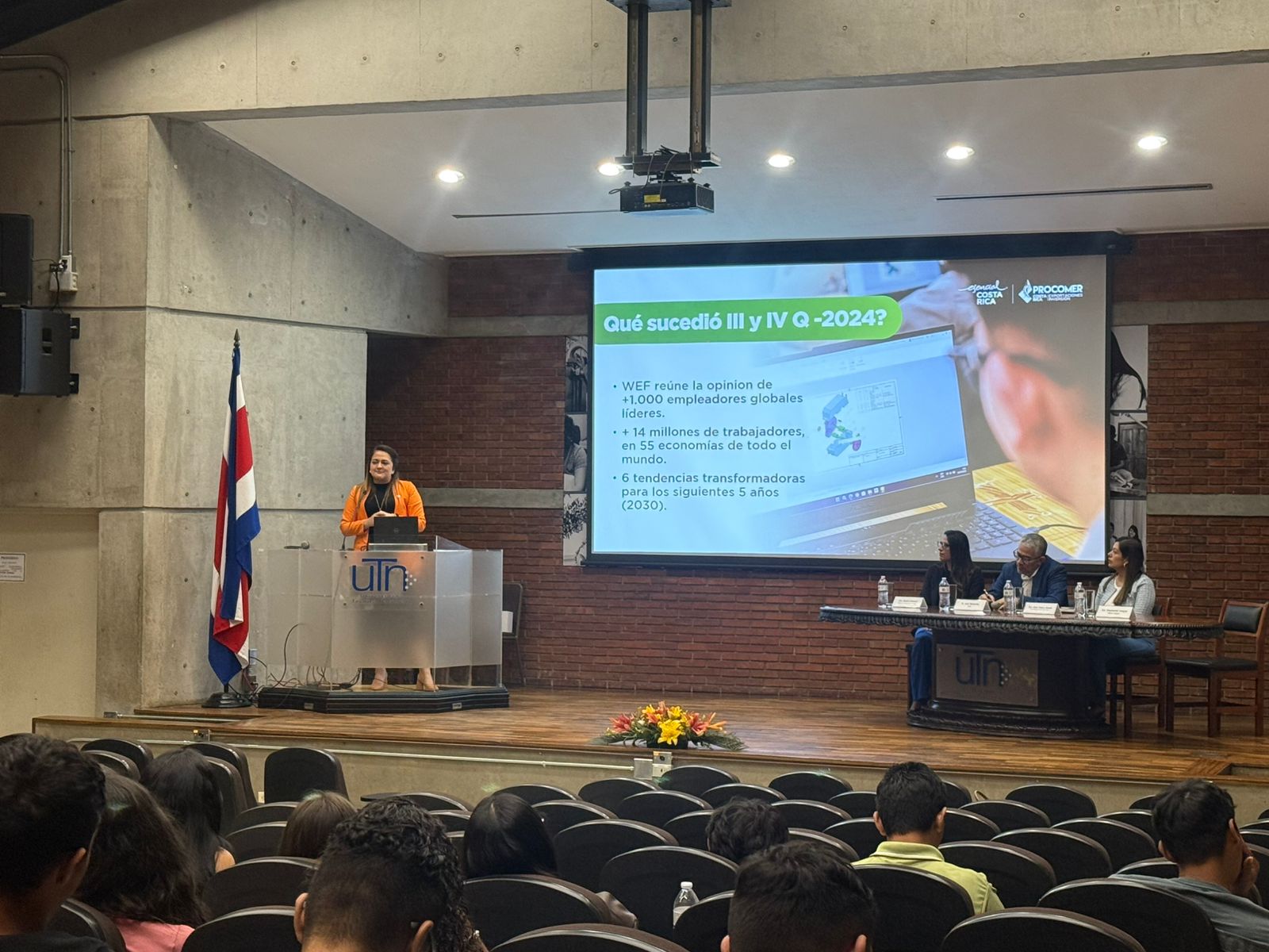 La jornada inició con las palabras de bienvenida del Rector, señor William Rojas Meléndez y del Vicerrector de Docencia, señor Luis Ricardo Sánchez Zúñiga, quienes destacaron la importancia de promover espacios de reflexión y formación orientados a la empleabilidad y al crecimiento humano. Señalando también que, en una era digitalizada el mayor acceso a fuentes de conocimiento amplía la visión de las personas para ser menos manipulables y más pensantes. Puntualmente el señor Rojas comentó que la carencia de habilidades vuelve a las personas más introvertidas, y con el tiempo esta introspección se convierte en una factura para la salud mental, por ello es necesario destacar la importancia de darle a la tecnología un uso adecuado, en donde la información promueva el pensamiento crítico, ya que somos los seres humanos quienes finalmente somos los verdaderos dueños del conocimiento.