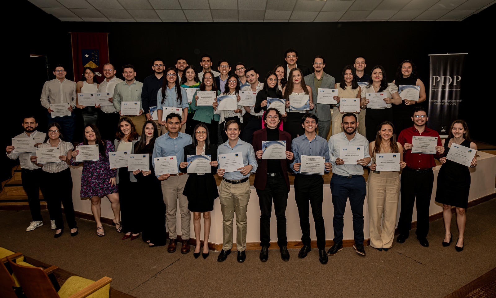 El pasado sábado 23 de noviembre se llevó a cabo la certificación anual del Programa de Desarrollo Profesional (PDP) 2024, una iniciativa que desde su creación en 2002 se ha destacado por formar profesionales éticos, con valores sólidos y habilidades esenciales para un desempeño óptimo en sus respectivas áreas.