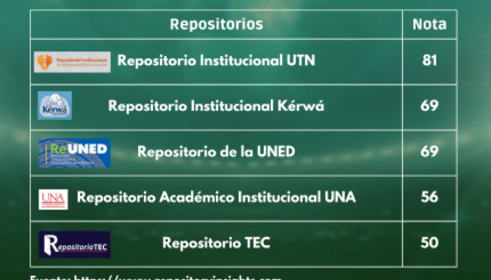 Repositorio Institucional de la UTN obtiene la mejor nota en Costa Rica según el Repository Insights