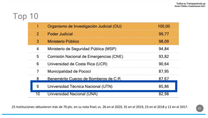 UTN logra la posición nueve en el ranking del Índice de Transparencia del Sector Público 2021