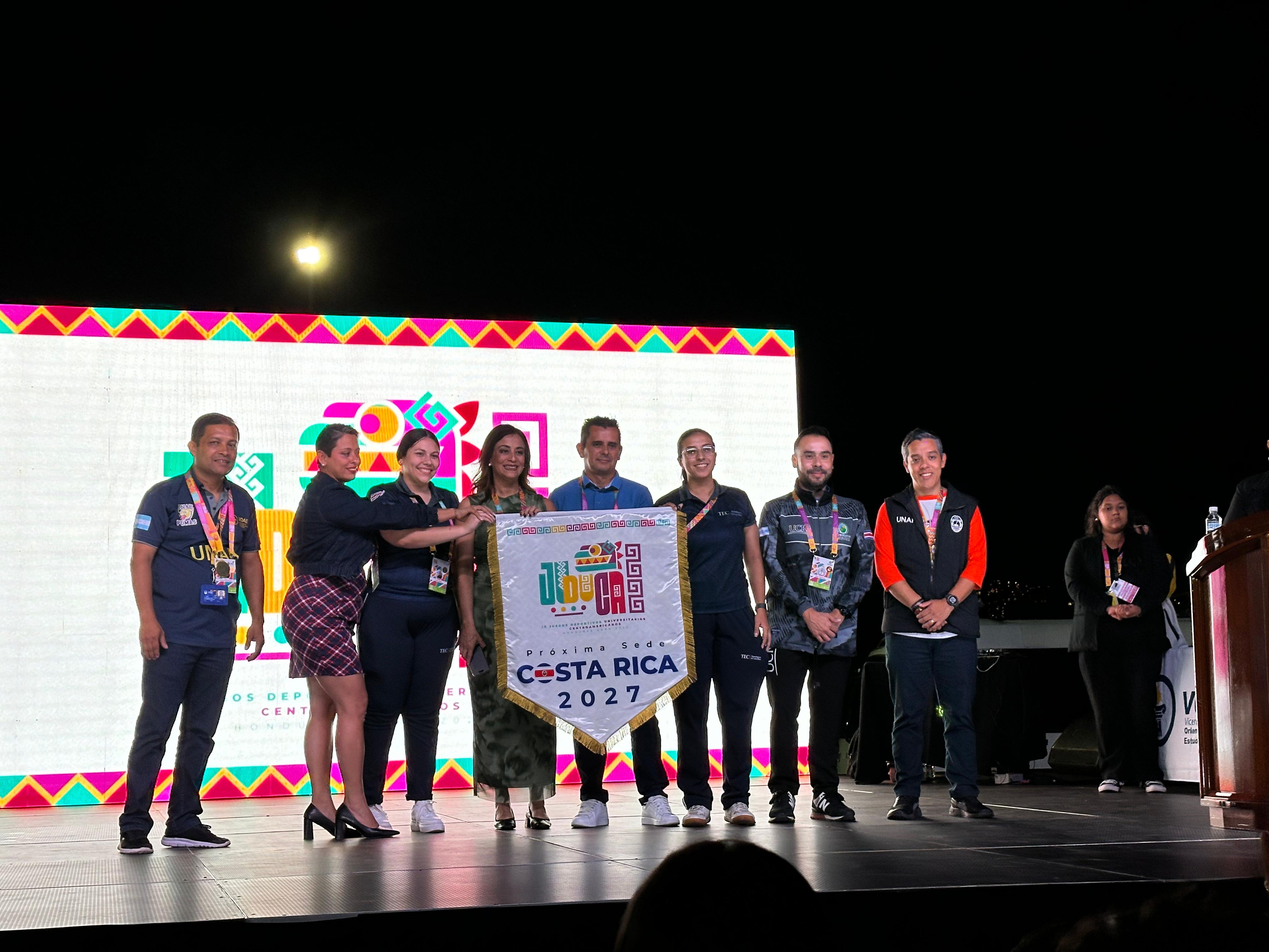 Durante la ceremonia de clausura en Tegucigalpa, cinco personas representantes de cada una de las cinco universidades públicas costarricenses fueron las encargadas de recibir, de forma simbólica, la bandera de los JUDUCA, marcando así el inicio del camino hacia la organización de la edición 2027.