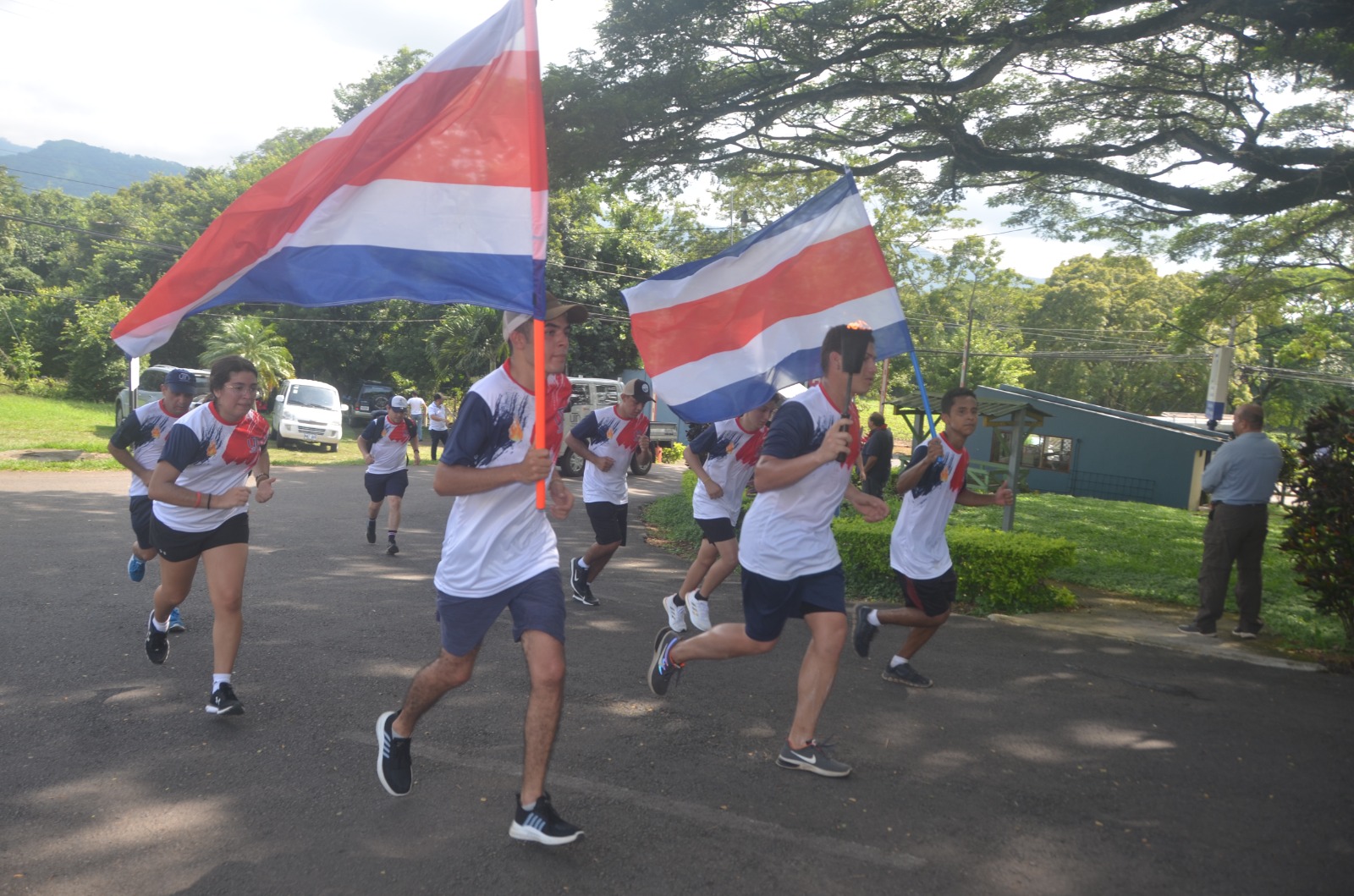 Posteriormente, se brindó un receso en la actividad, para recibir la antorcha, la cual fue portada por estudiantes y funcionarios de la Sede, desde el municipio del cantón de Atenas y recibida en manos del señor Eduardo Barrantes, decano de la Sede. Una vez encendido el fuego patrio en el auditorio, dio inicio el Festival de Comidas Costarricense, en el cual todos los presentes pudieron degustar diversos platillos típicos.