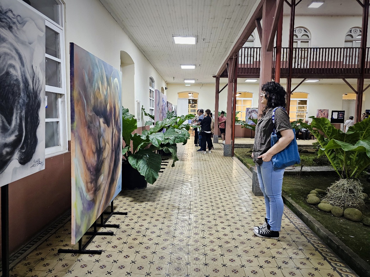 El expositor Róger Zamora, licenciado en Artes Plásticas con énfasis en Pintura por la Universidad Nacional de Costa Rica y de larga trayectoria como docente en técnicas artísticas, manifestó que con sus obras “nos propone reflexionar mediante el movimiento interior de las figuras humanas, que se presentan en una constante metamorfosis espiritual, una catarsis liberadora que expresa las más profundas emociones, buscando siempre las eternas preguntas de la vida: el amor, la muerte, el llanto, la guerra, la paz, que acontecen en nuestro interior.”