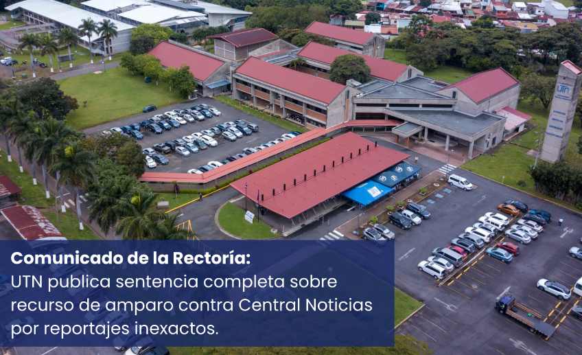 La Universidad Técnica Nacional informa a la Comunidad Universitaria y a la Opinión Pública, la publicación de la sentencia integral del Recurso de Amparo declarado con lugar, mediante el Voto 2025-021330 de las 13:11:00 horas del 9 de Julio del 2025, de la Sala Constitucional de la Corte Suprema de Justicia, tramitado en el expediente 25-017708-0007-CO.